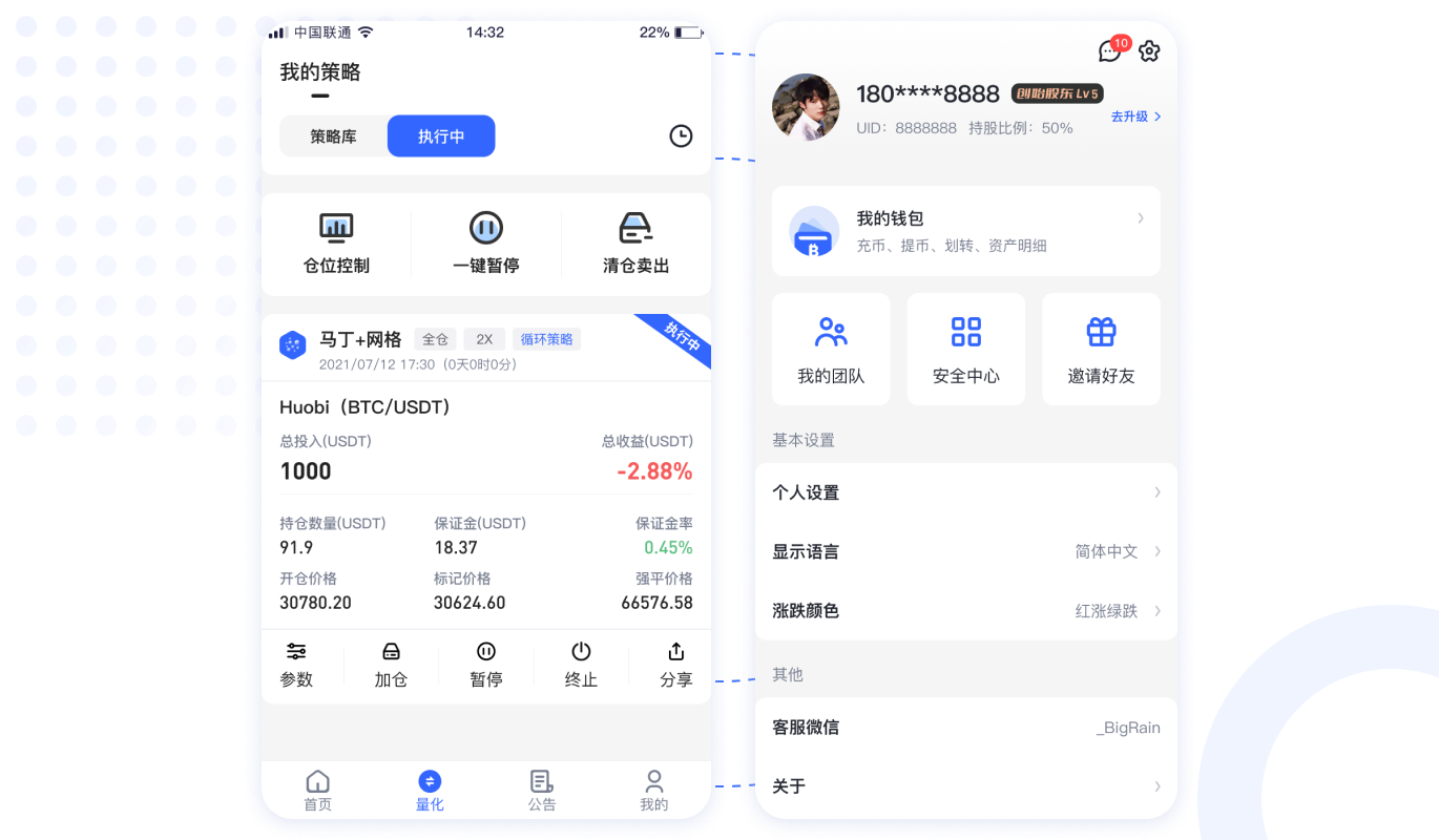 馬丁倍投+網格混合策略、趨勢補倉、尾單補倉、風險控制、防瀑布機制、螺旋式補倉、一鍵補倉,首單加倍。